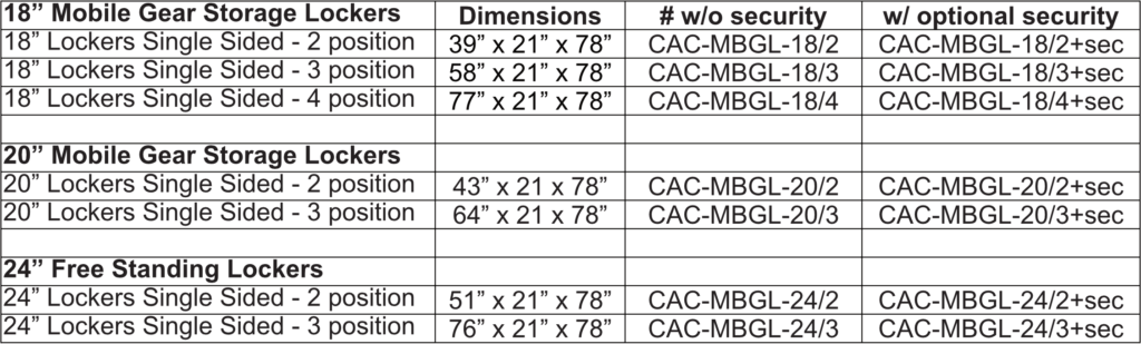 Find out which Mobile Gear Storage unit is right for you by browsing the dimensions and product pages below