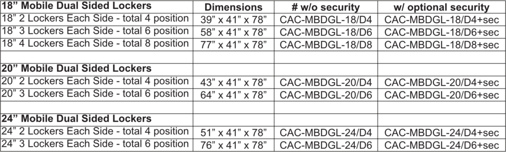 Gear Storage/Store It.Double Sided Mobile Gear Storage Locker 24 inches wide 6 total position with security